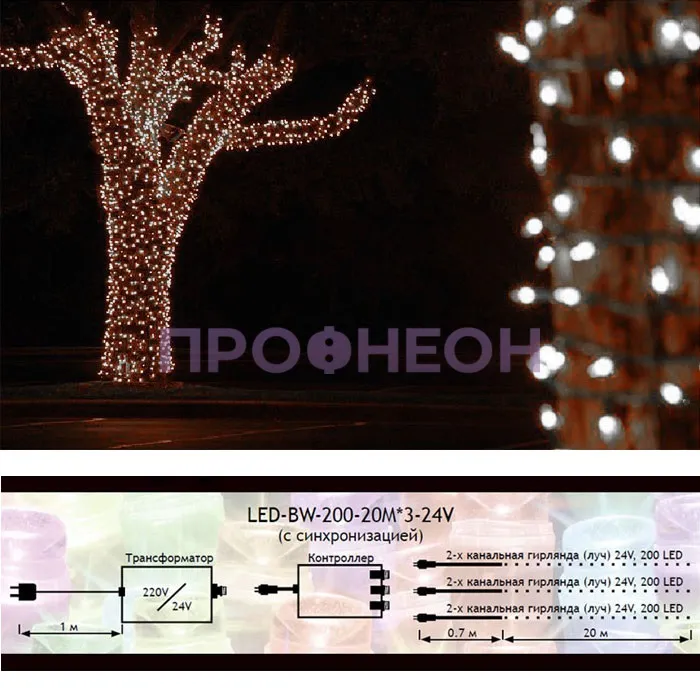 Эта гирлянда эффективна для подсветки архитектурных элементов зданий, оформления витрин магазинов и ресторанов, создания новогодних и праздничных инсталляций в торговых центрах и на улицах. Три нити в одном комплекте дают необходимую плотность света для крупных объектов, экономя время на монтаж и согласование элементов.