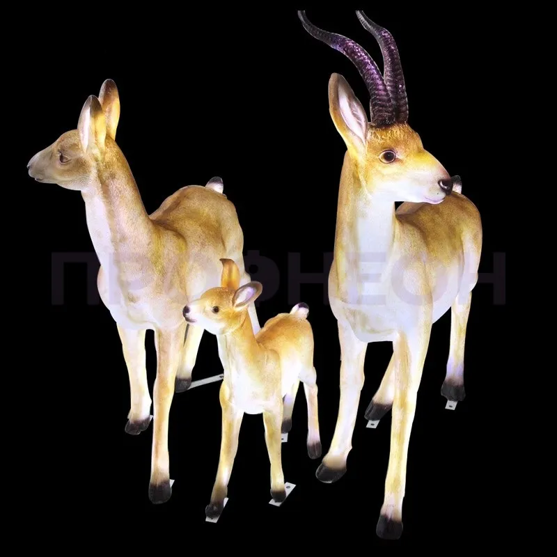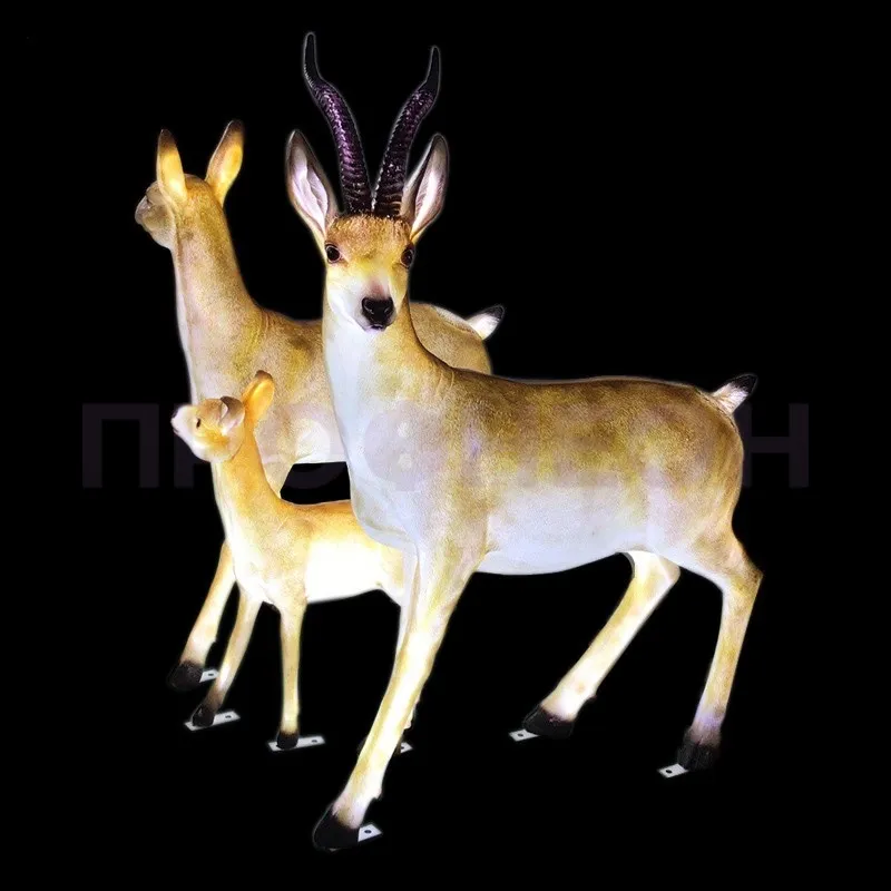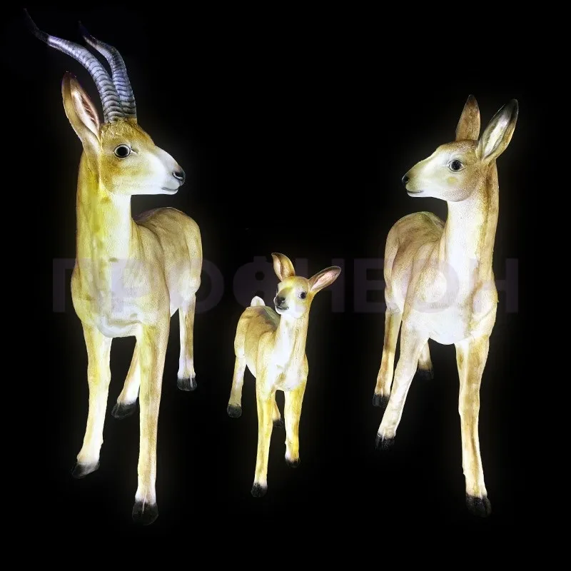 Готовы украсить свою территорию? Запросите коммерческое предложение на объемные фигуры «Семья антилоп». Мы рассчитаем стоимость с учетом доставки и монтажа, подберем оптимальный вариант светового решения. Для оптовых заказчиков — специальные условия.