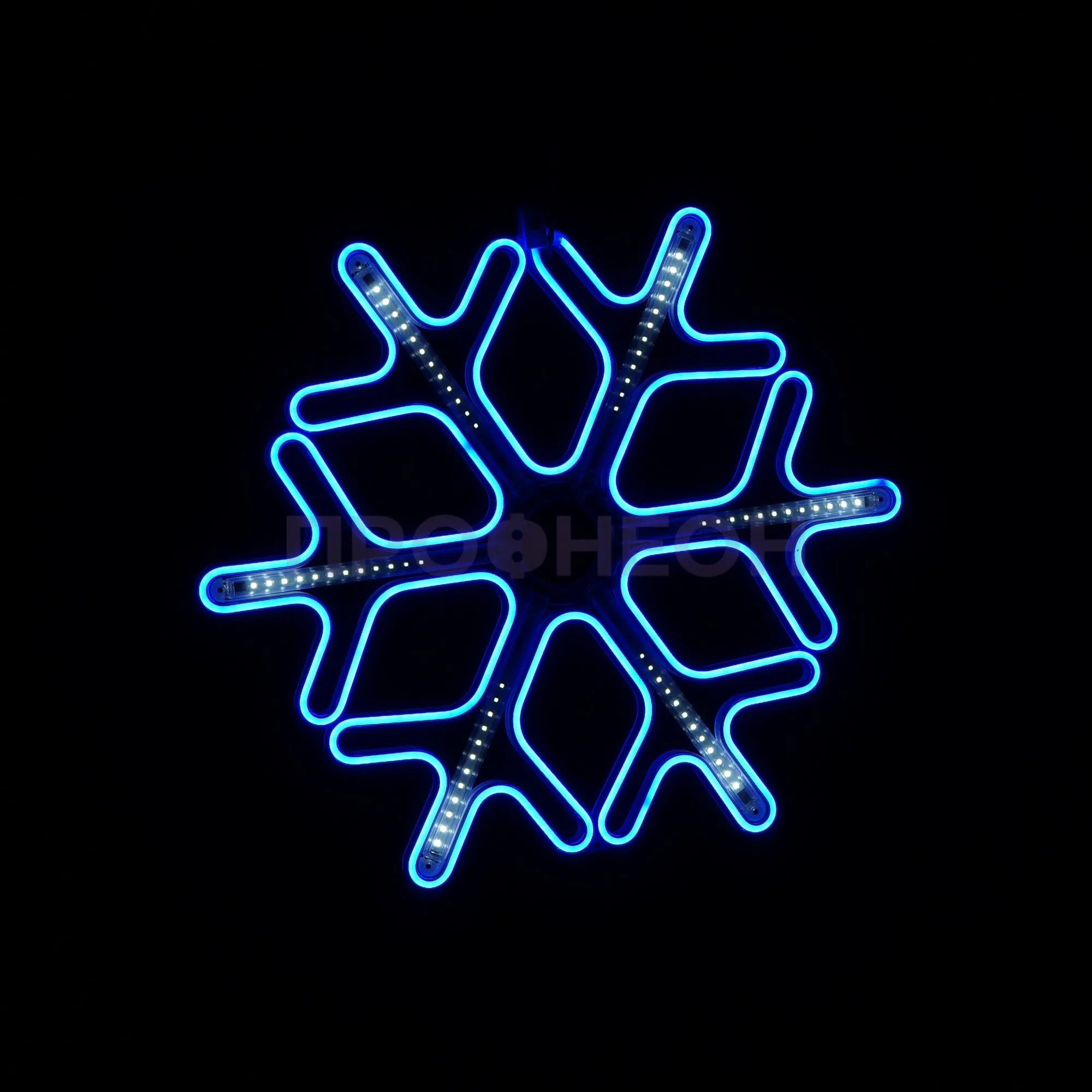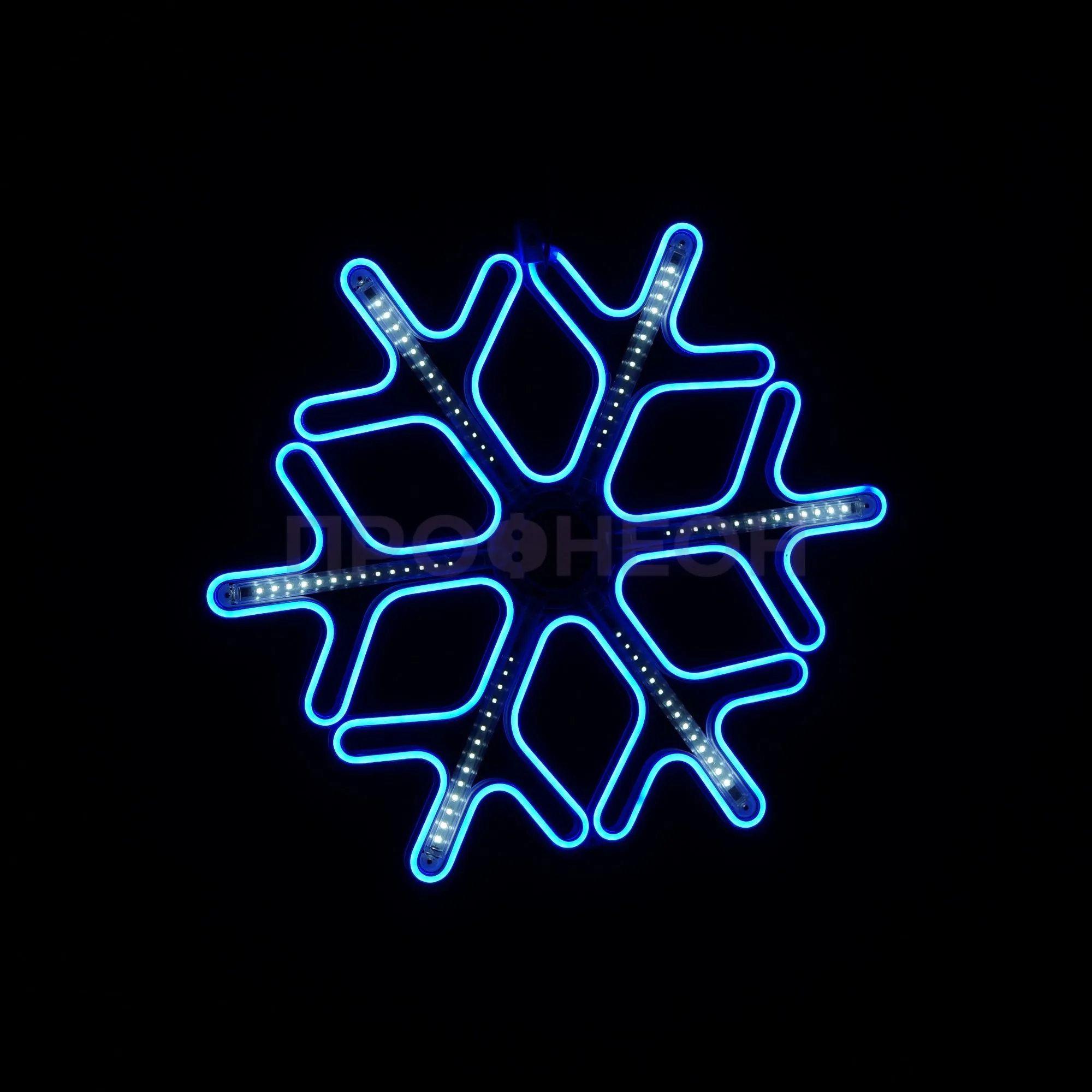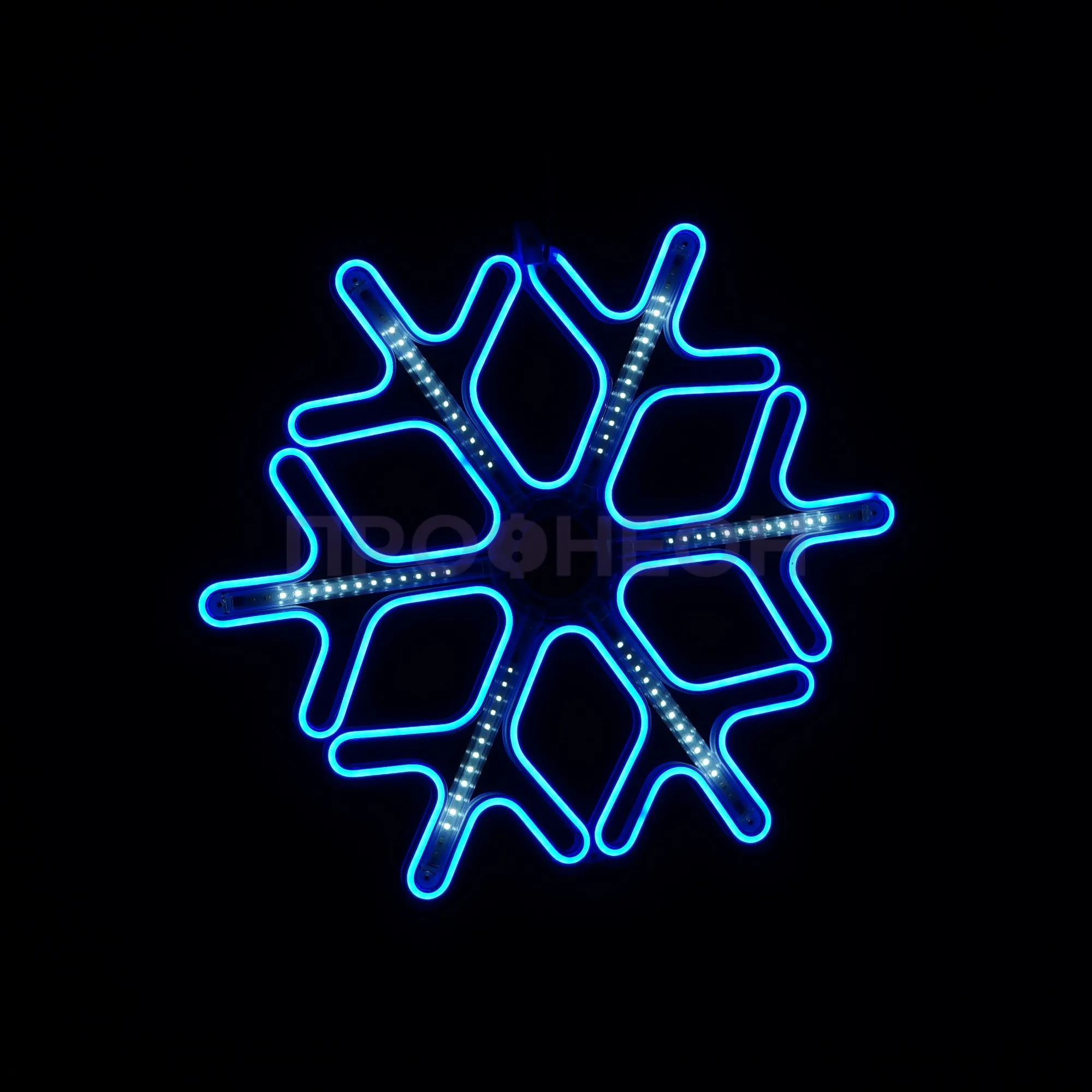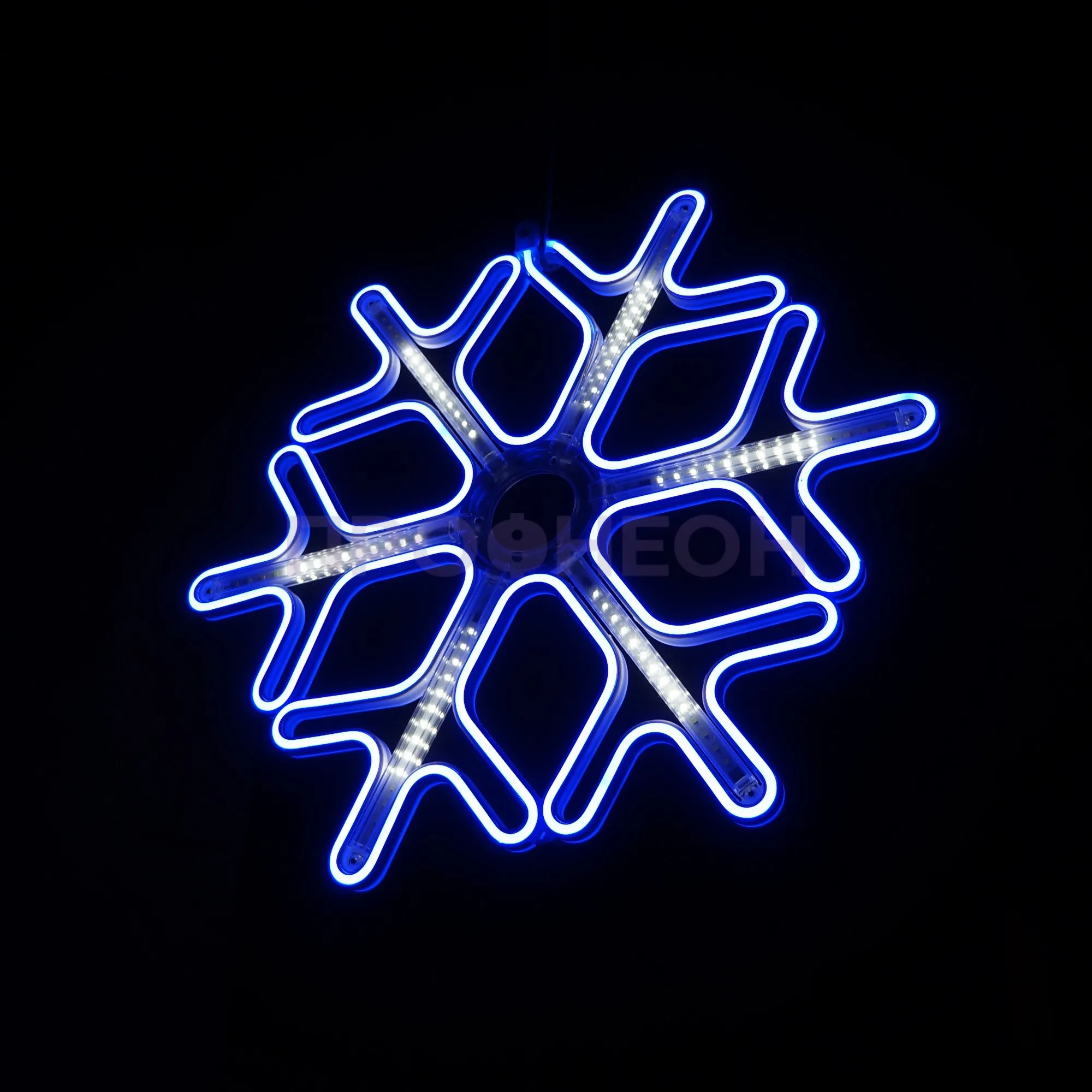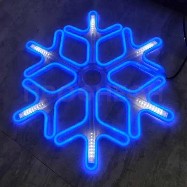 Плоская светодиодная фигура «Снежинка» размером 60x60 см — это готовое архитектурно-декоративное решение для сезонного и постоянного оформления. Она решает задачу создания яркого, энергоэффективного и безопасного акцента на фасадах зданий, витринах магазинов, в интерьерах торговых центров и ресторанов. Конструкция на основе гибкого неона и светодиодов обеспечивает равномерное синее свечение с динамическими эффектами, привлекая внимание без лишних затрат на электроэнергию и обслуживание.
