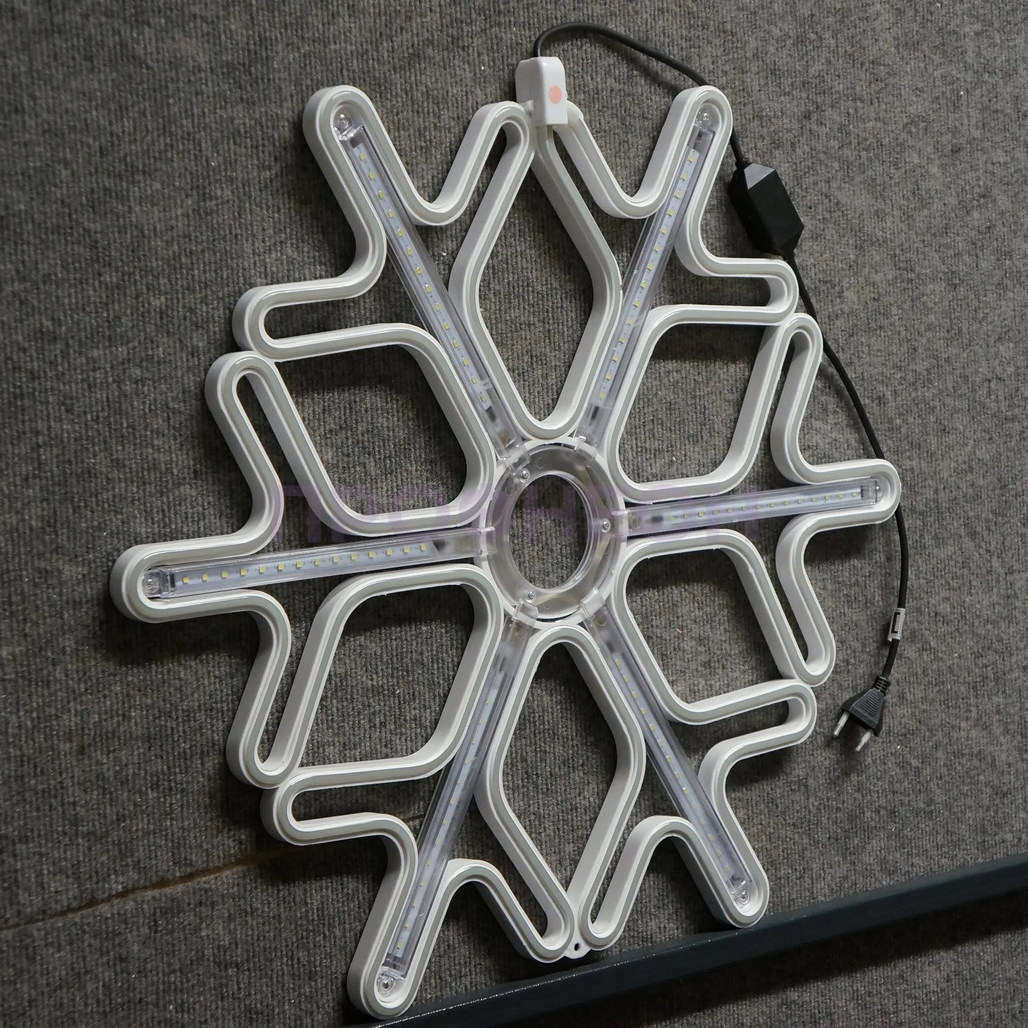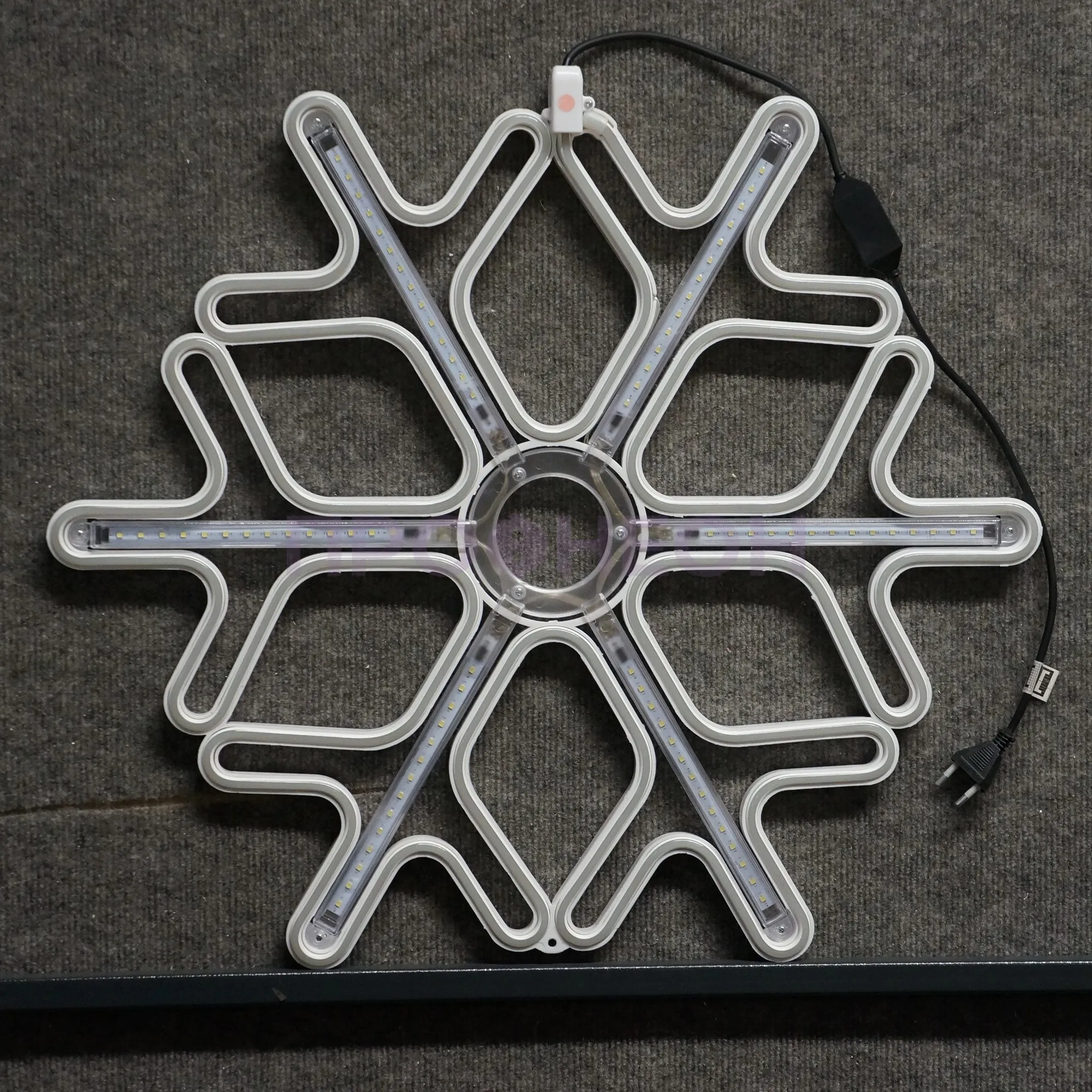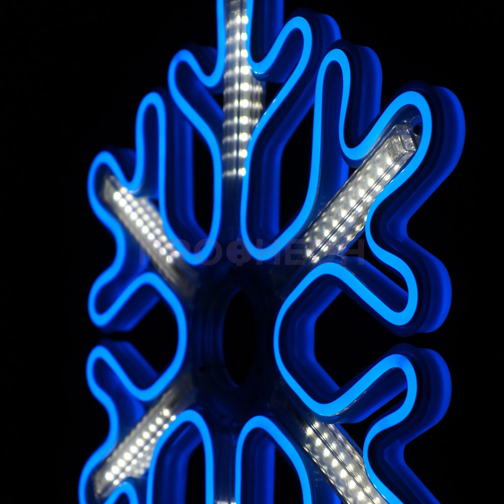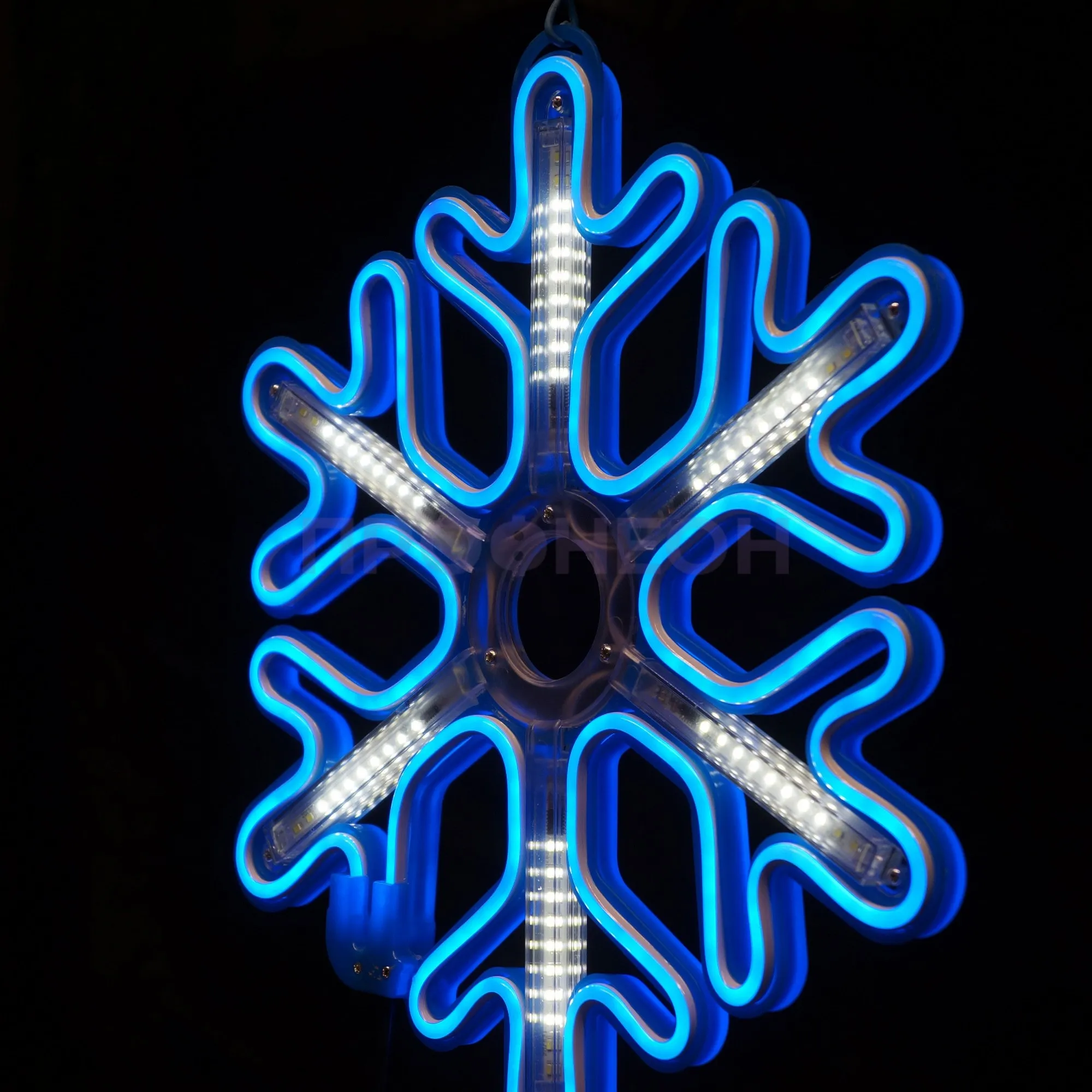 Плоская светодиодная фигура «Снежинка» размером 60x60 см — это готовое архитектурно-декоративное решение для сезонного и постоянного оформления. Она решает задачу создания яркого, энергоэффективного и безопасного акцента на фасадах зданий, витринах магазинов, в интерьерах торговых центров и ресторанов. Конструкция на основе гибкого неона и светодиодов обеспечивает равномерное синее свечение с динамическими эффектами, привлекая внимание без лишних затрат на электроэнергию и обслуживание.